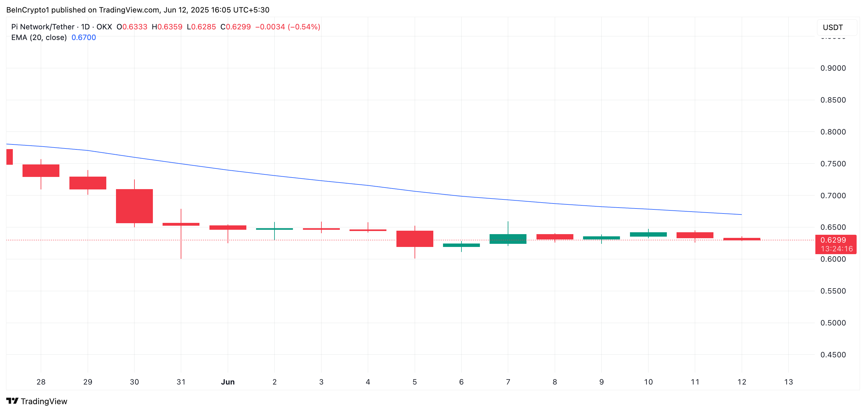 Pi Network-тің жергілікті токені маусымның 7-сінен бастап, бірнеше апта бойы тұрақты төмендеуден кейін бүйірлік бағытта саудаланып келеді. Ағымдағы баға әрекеті сатып алушылар мен сатушылар арасындағы тартысты көрсетеді, ешбір тарап бұзылуға жеткілікті сенімділік көрсетпей отыр.