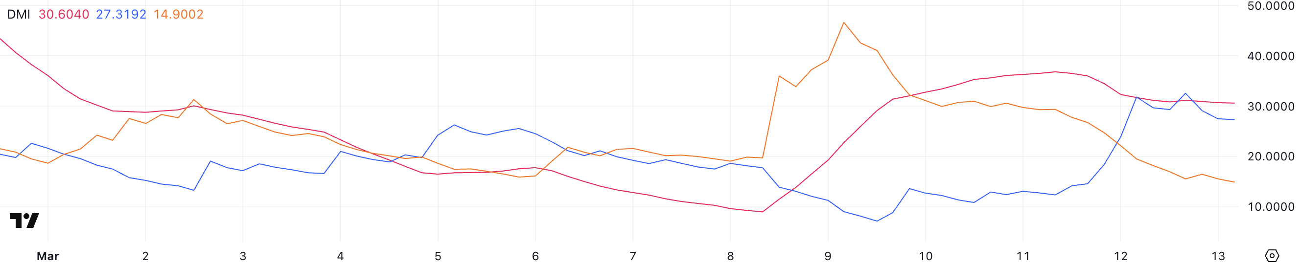 ADX-тің қазіргі төмендеуі PI жоғары трендте қалса да, осы қозғалыстың артындағы импульс әлсіреп жатқанын көрсетеді.
