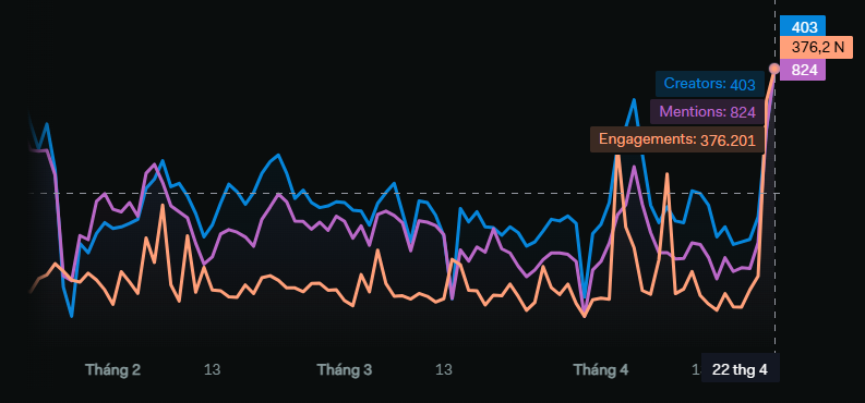 22 сәуірде қаралымдар, лайктар, пікірлер және ретвиттер сияқты қатысу көрсеткіштері күрт өсті. Әлеуметтік медиа платформаларындағы жалпы өзара әрекеттесу саны 376 000-нан асты, бұл жылдың басынан бергі ең жоғары деңгей.