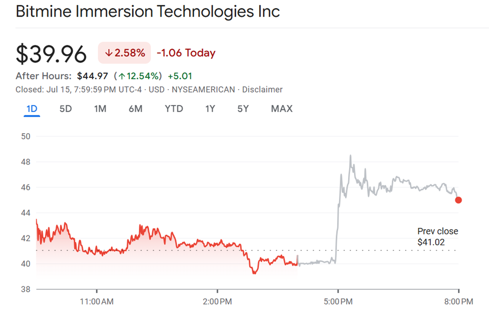Осы қадамнан кейін BitMine Immersion Technologies-тің BMNR 12%-дан астамға өсіп, нарыққа дейін 44,97 долларға сатылды.