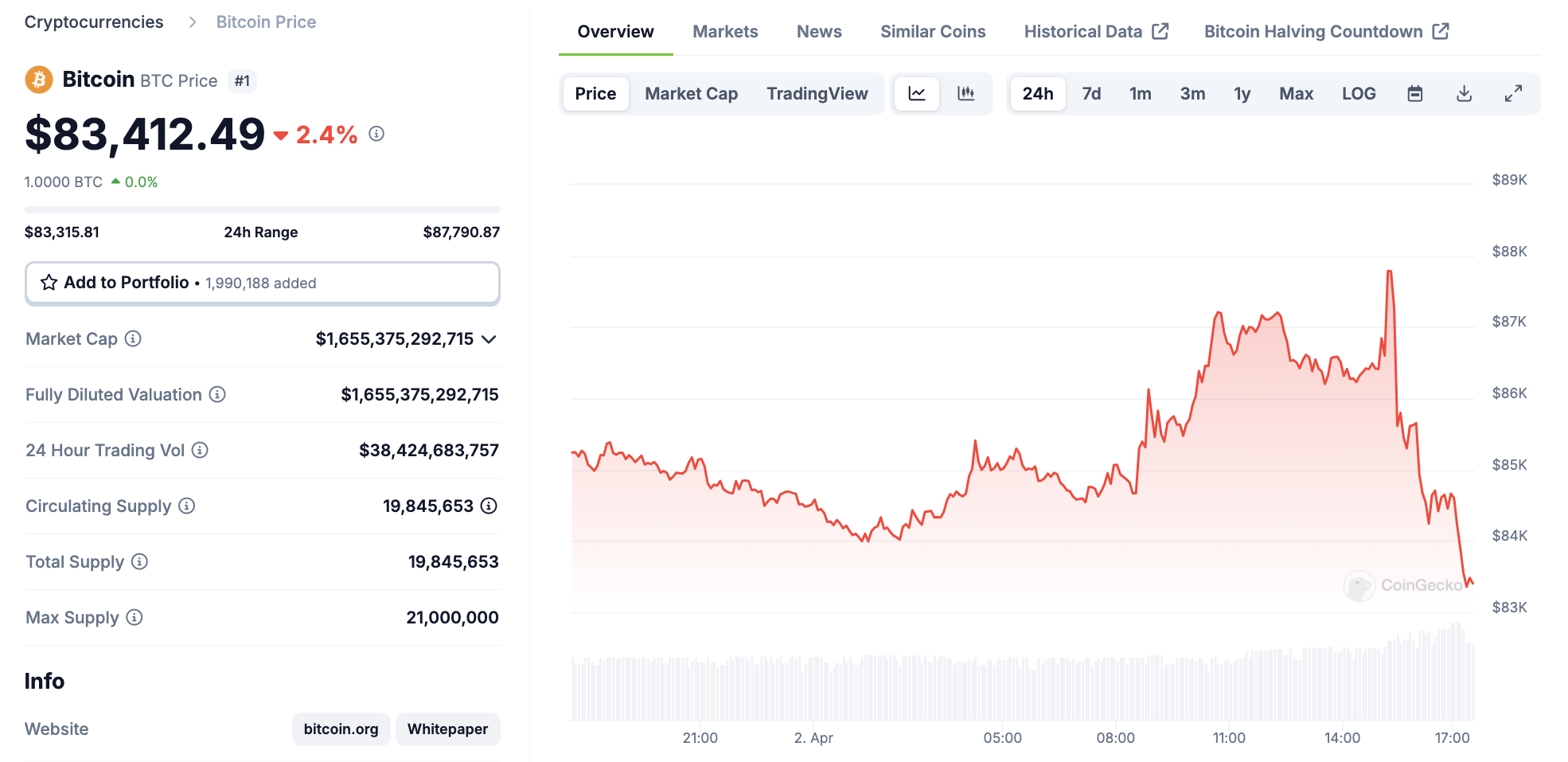 Крипто нарығы бұл тарифтерді кеңінен күткендіктен, таңертең біраз шығындар есептелді. Өкінішке орай, сала кейбір қиындықтарды күткенмен, бұндай жоғары деңгейдегі тарифтерге дайын болмады. Polymarket-тің рецессия ықтималдығы күрт өсуде, ал Bitcoin бағасы құлдырады.