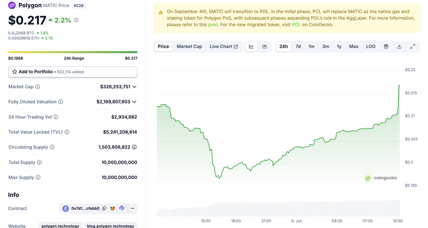 Polygon бағасы осы жаңалықтан кейін айтарлықтай өсті.