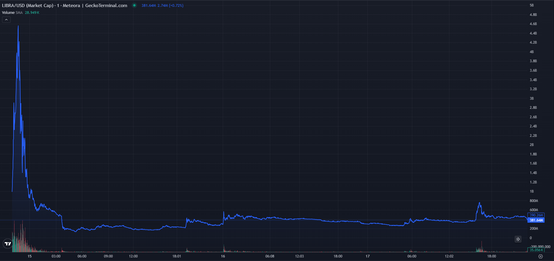 14 ақпан, жұма күні, Милей токенді оның іске қосылғаннан кейін көп ұзамай твиттерде қолдады. Бұл LIBRA мемкоинының нарықтық капитализациясын 4 млрд доллардан асыруға әкелді.