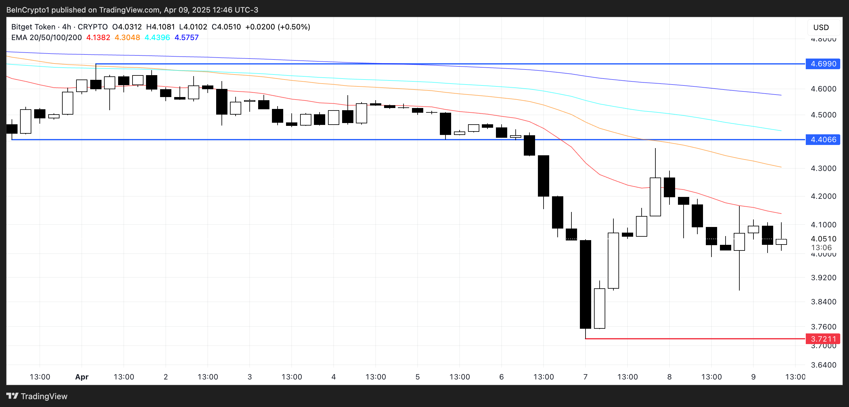 Ағымдағы түзету кері бұрылса, Bitget Token 4,40 доллар деңгейіндегі қарсылықты сынауы мүмкін, ал егер ол бұзылса, 4,69 долларға дейін көтерілу ықтимал.
