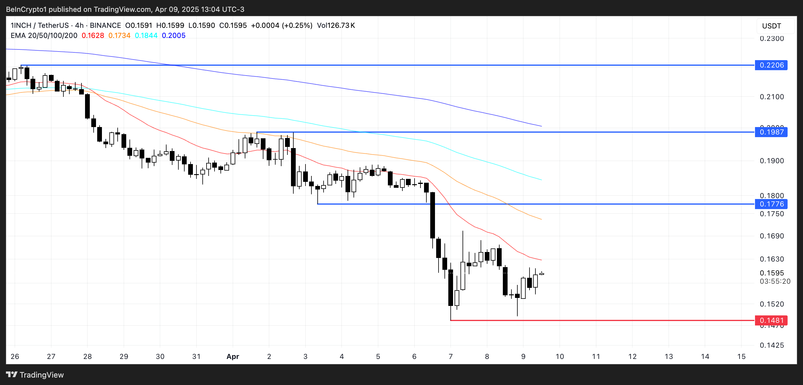Түзету тереңдесе, 1INCH 0,148 доллар маңындағы қолдауды сынауы мүмкін.