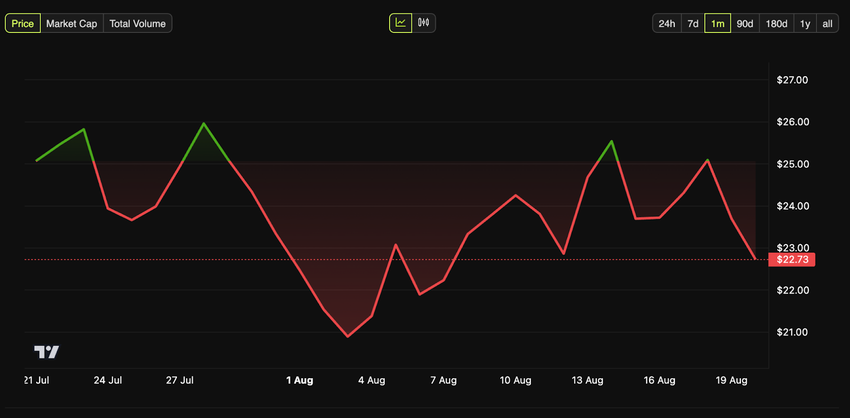 Avalanche-тің жергілікті токені, AVAX, есеп беру кезінде шамамен 22,50 доллардан саудаланып жатыр. Блокчейннің жылдамдыққа, төмен комиссияларға және институционалдық серіктестіктерге назар аударуы дәстүрлі активтерді цифрландыруды көздейтін компаниялар үшін тартымды орынға айналдырады.