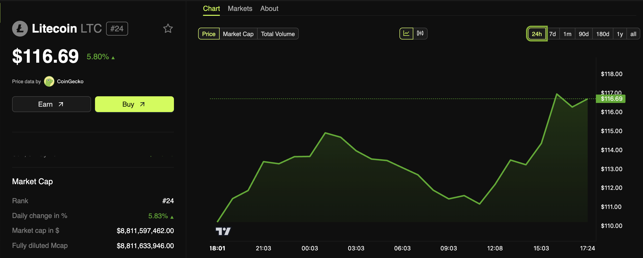Әрине, бұл ETF туралы қауесеттер Litecoin бағасына әсер етті. Nasdaq алғаш рет осы 19b-4 формасын тапсырғаннан кейін, LTC құны 12%-ға өсті.