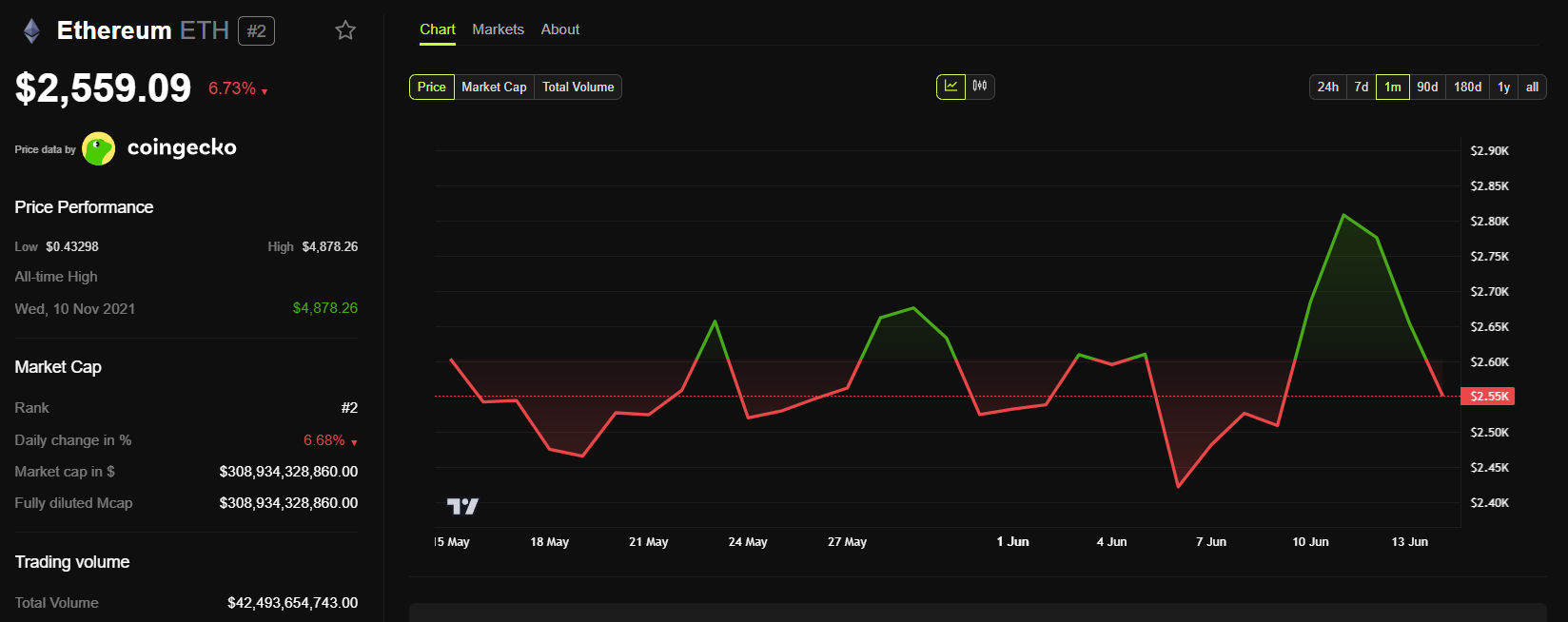 Институционалдық инвестицияларға қарамастан, токен басшылықтағы келіспеушіліктерден және геосаяси оқиғалардан зардап шегуде. Соңғы 24 сағат ішінде ETH бағасы 7%-дан астамға төмендеді.