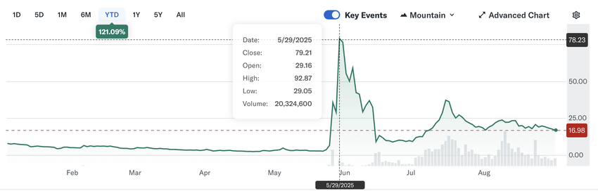 Агрессивті сатып алуларына қарамастан, SharpLink акциялары құбылмалы болды. SBET сейсенбі күні 16,98 доллардан саудаланды, бұл күні шамамен 5%-ға төмендеді, дегенмен акциялар мамыр айының ортасынан бері 400%-дан астам өсті, сол кезде олар 3 доллардан төмен саудаланған еді.