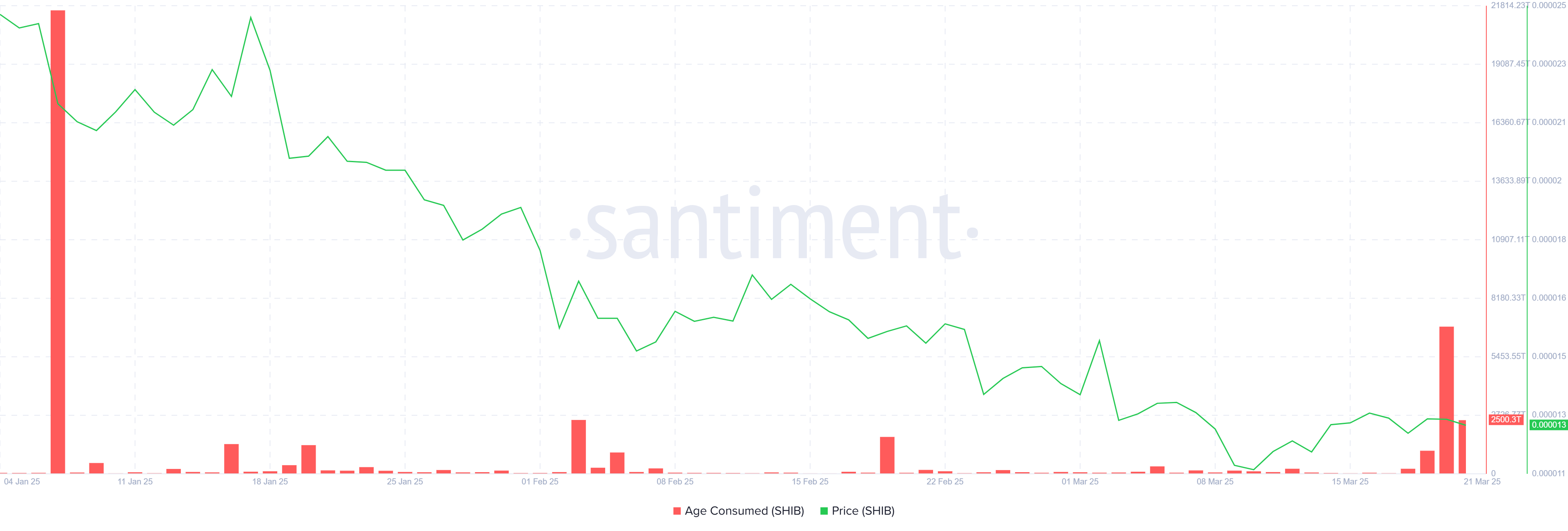 Инвесторлардың көңіл-күйі аюлы бағытқа ауысты, бұл ұзақ уақыт бойы сақталған монеталардың қозғалысын бақылайтын Age Consumed метрикасының өсуімен дәлелденеді. Баға төмендеген кезде, Age Consumed көрсеткішінің күрт өсуі ұзақ мерзімді иелердің (LTHs) шығындарды өтеу үшін өз позицияларын сататынын жиі көрсетеді.