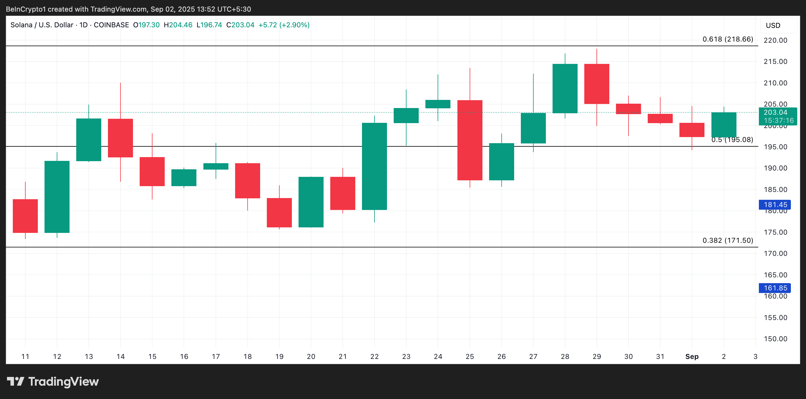 Егер аюлық қысым күшейе берсе, SOL 200 доллар психологиялық деңгейінен төмен шешуші үзіліс көріп, қысқа мерзімде одан да үлкен шығындарға жол ашуы мүмкін. Бұл жағдайда монетаның бағасы 195,08 долларға дейін төмендеуі ықтимал.
