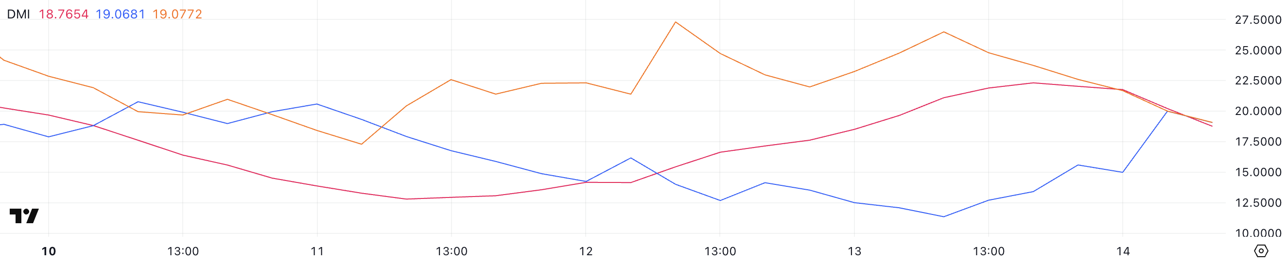 Сонымен қатар, +DI 11,3-тен 19-ға дейін көтерілді, ал -DI 26,4-тен 19-ға дейін төмендеді, бұл сатып алу және сату қысымының өзгеруін білдіреді.