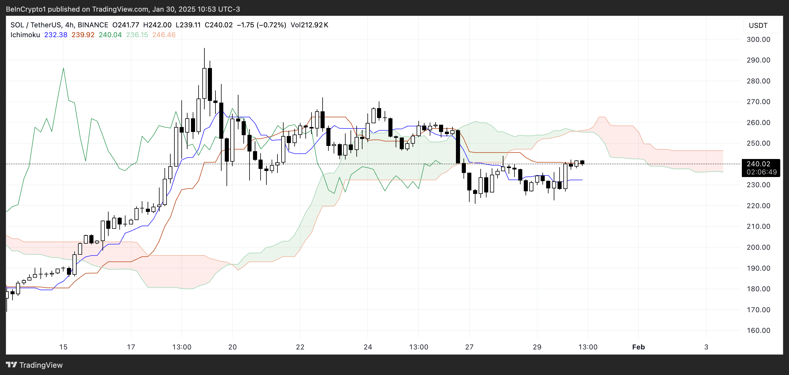 Solana Ichimoku Cloud аралас нарық көңіл-күйін көрсетеді