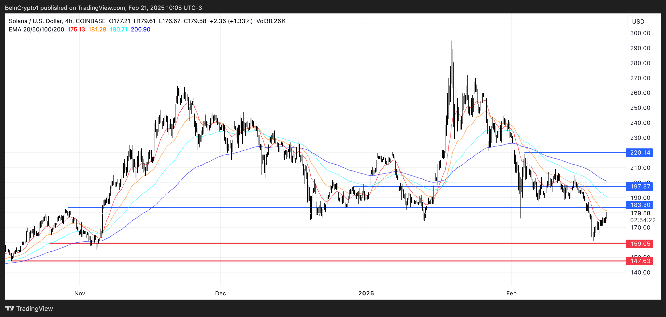 Егер SOL ағымдағы төмендеу трендін толық кері бұра алса, алдымен 183 доллар деңгейіндегі қарсылықты тексеруі мүмкін. Бұл деңгейден сәтті өту күшті бұқа импульсін білдіріп, бағаны келесі 197 доллар деңгейіндегі қарсылыққа дейін итермелеуі мүмкін.