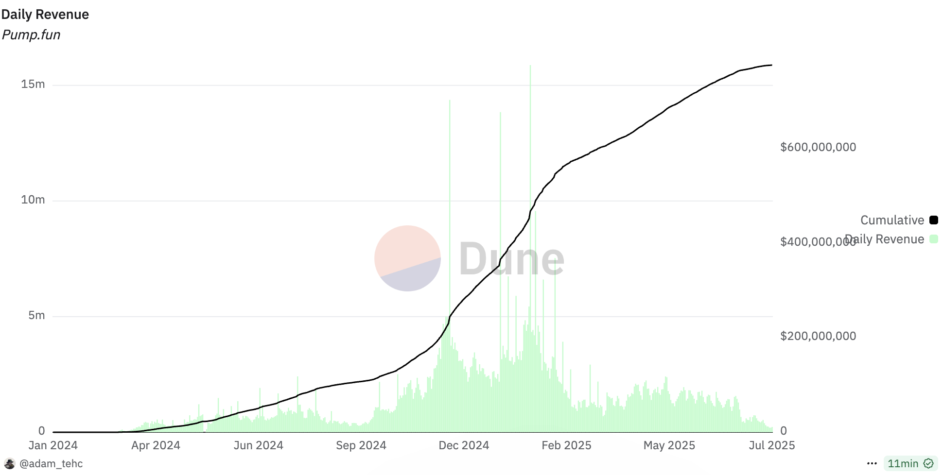 Pump.fun-ның күнделікті табысы 2024 жылдың қыркүйегінен бері алғаш рет 300 000 долларға дейін төмендеді.