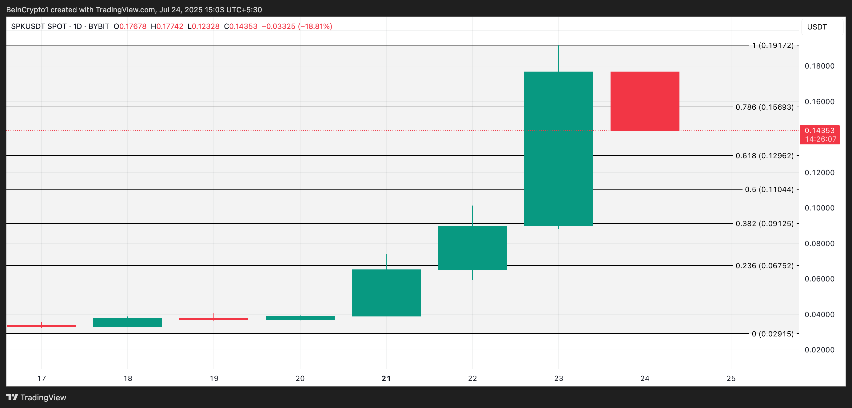 Алайда, егер пайда алу тоқтаса, SPK күшін қайта жинап, 0,15 доллардан жоғары көтеріліп, 0,19 доллар тарихи максимумын қайтаруға тырысуы мүмкін.