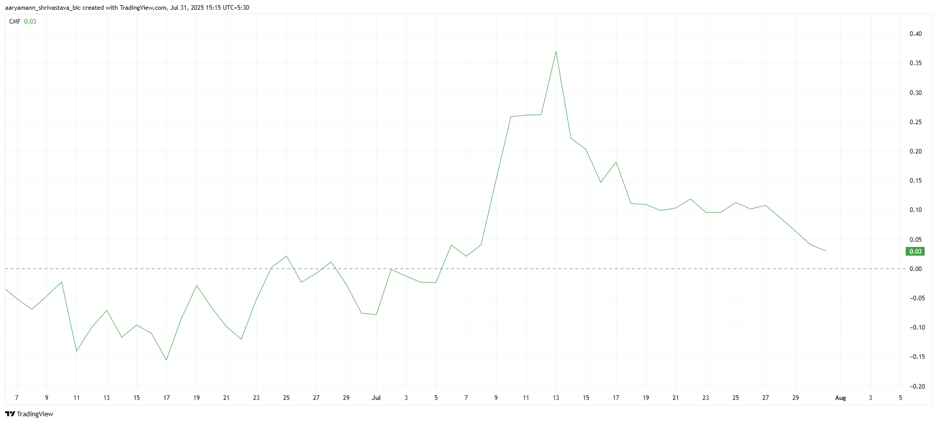 Шығыстардың өсуі трейдерлердің Stellar-дың қысқа мерзімді болашағына сенімсіздігін көрсетеді, бұл баға әрекетіне әсер етуде. CMF әлі де оң аймақта болғанымен, ол теріс аймаққа өтуге қауіпті жақын.
