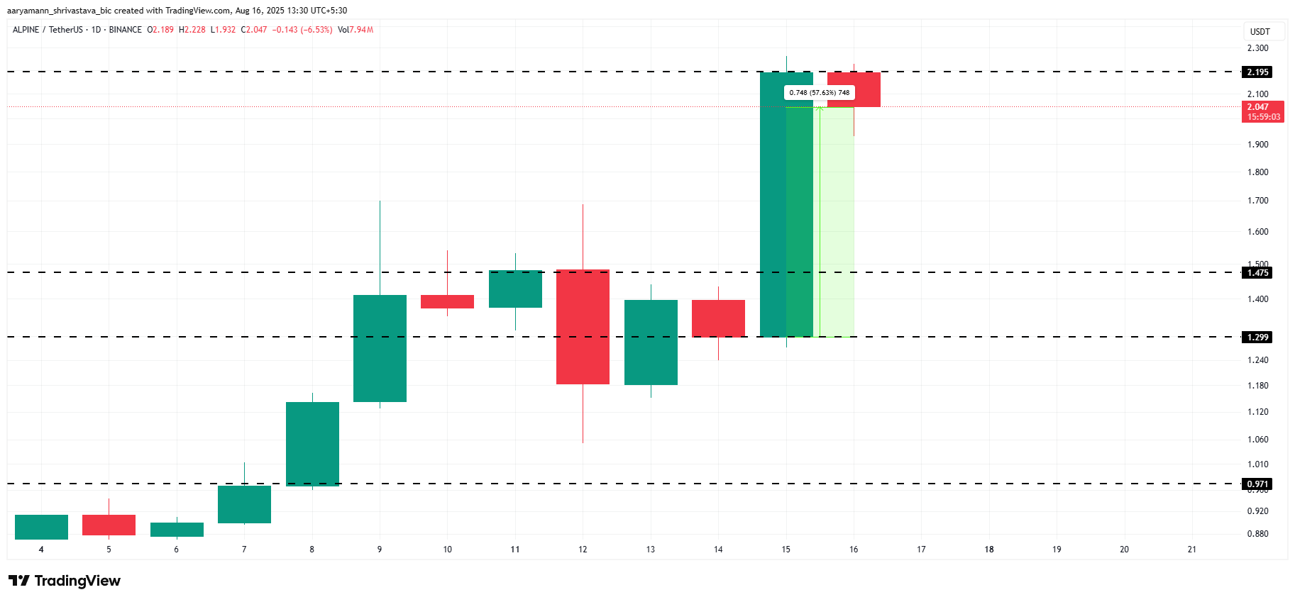 Alpine F1 Team Fan Token соңғы 24 сағат ішінде 57%-ға өсті, 2 долларға жетіп, Формула 1 маусымына деген қызығушылықтың артуымен байланысты. Токеннің әсерлі көрсеткіші спорттағы фанаттардың қатысуы мен крипто құны арасындағы күшті байланысты көрсетеді.