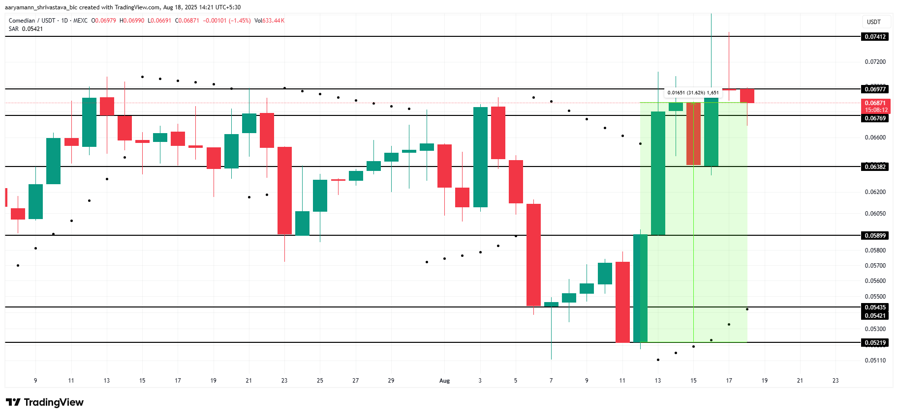 BAN қазір 0,069 доллардағы қарсылықты сынап жатыр, бұл деңгей оның прогресін бір айдан астам уақыт бойы тежеп келді. Алайда, шамдардың астындағы Параболикалық SAR индикаторының болуы жоғары трендтің белсенді екенін көрсетеді. Егер сатып алу қысымы жалғаса берсе, BAN бұл кедергіні ақыры бұзып, оны 0,074 долларға қарай итермелеуі мүмкін.