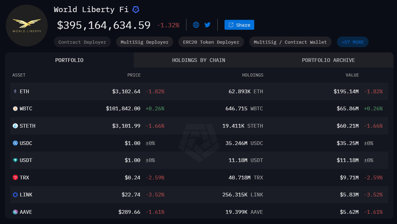 Сонымен қатар, Трамп отбасы қолдайтын DeFi жобасы World Liberty Financial (WLFI) өз портфелін белсенді түрде кеңейтуде.