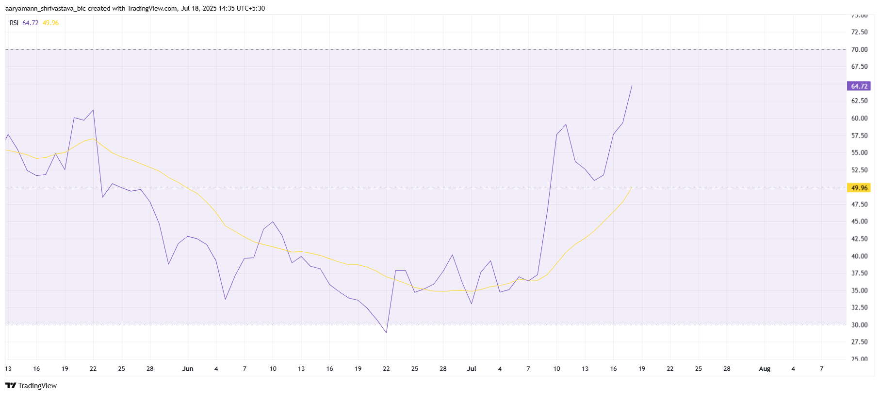 Қиындықтарға қарамастан, OFFICIAL TRUMP-тың пайдасына жұмыс істейтін кейбір макро импульс бар. Салыстырмалы күш индексі (RSI) қазіргі уақытта бұқа аймағында орналасқан, 50,0 бейтарап белгісінен жоғары тұр. Бұл кең ауқымда нарықтың жалпы импульсі оң болып қалатынын көрсетеді.