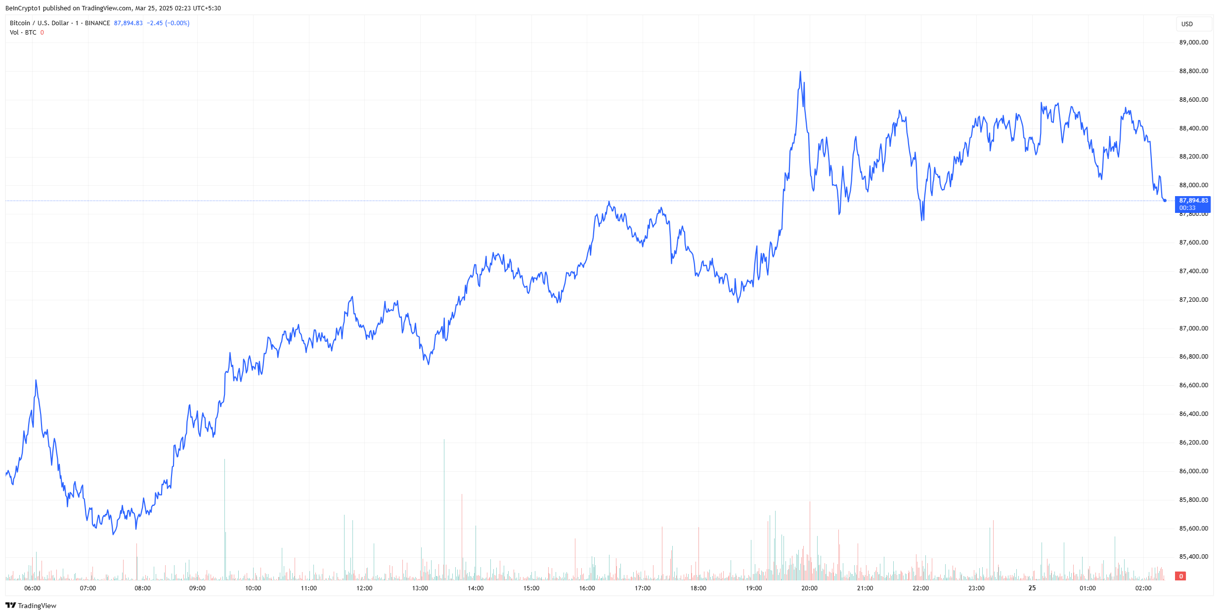 Мысалы, Трамп осы айдың басында икемділік туралы айтқанда, Bitcoin шамамен 88 000 долларға қалпына келді. Тармақталған тарифтер ұқсас өсімді тудыруы мүмкін.