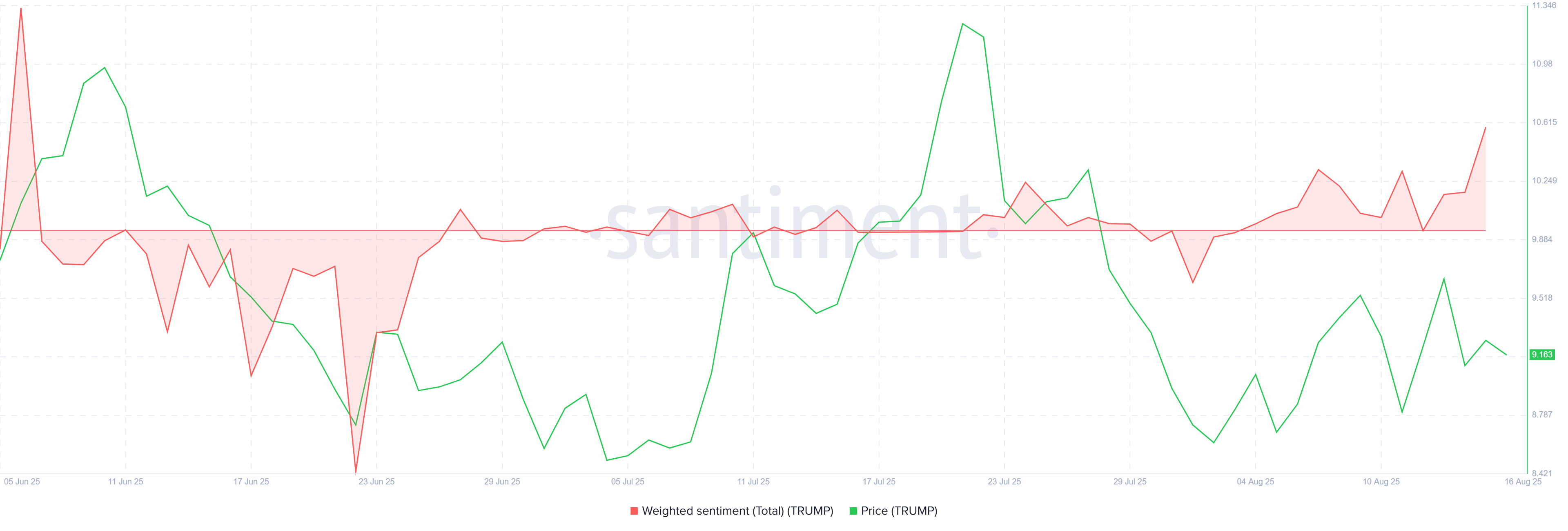 Трамп пен Путин арасындағы жоғары деңгейдегі кездесуден кейін TRUMP-қа қатысты инвесторлардың көңіл-күйі айтарлықтай жақсарды. Қазіргі геосаяси шиеленістерді ескере отырып, көптеген адамдар бұл саммитті АҚШ пен Ресей арасындағы қарым-қатынасты жақсартуға бағытталған қадам деп санады.