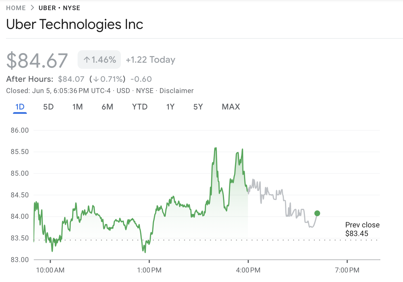 Соған қарамастан, стейблкоиндер туралы сұхбаттан кейін Uber акцияларының бағасы қысқа уақытқа көтерілді. Бұл өсімдер сауда-саттықтан кейінгі уақытта айтарлықтай төмендеді.