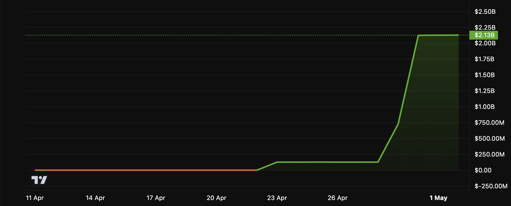 BeInCrypto деректері бойынша, USD1 қысқа мерзімде айтарлықтай өсті. 28 сәуірде оның нарықтық капитализациясы 128 млн доллар болды. Алайда, келесі күні ол 1 млрд долларға дейін өсті.