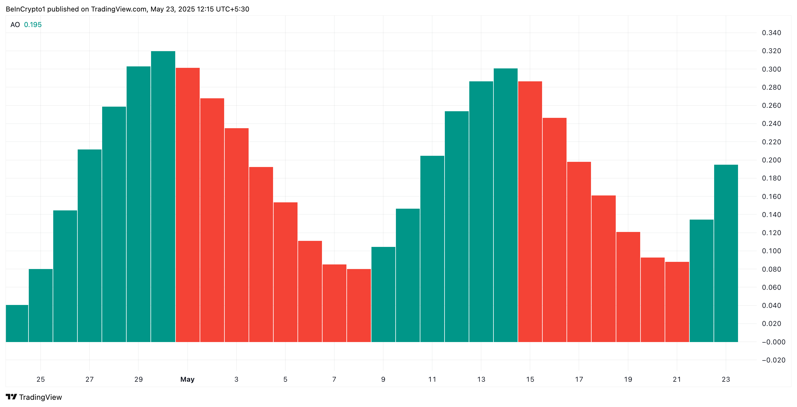 WLD содан бері 1,53 долларға дейін аздап төмендегенімен, бұқа көңіл-күйі әлі де сақталуда. Токеннің күнделікті графикте байқалған Awesome Oscillator көрсеткіштері мұны растайды.