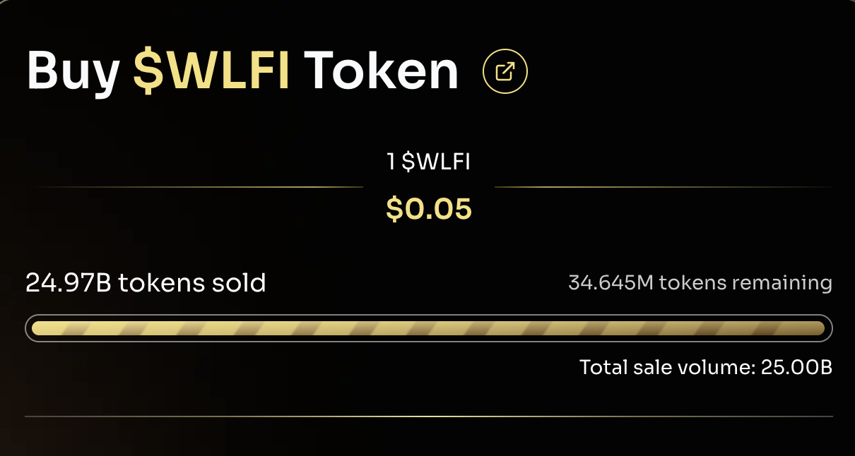 Жобаның ресми сайтындағы деректерге сәйкес, World Liberty Financial қазір 25 млрд токеннің 24,97 млрд WLFI токенін сатты.