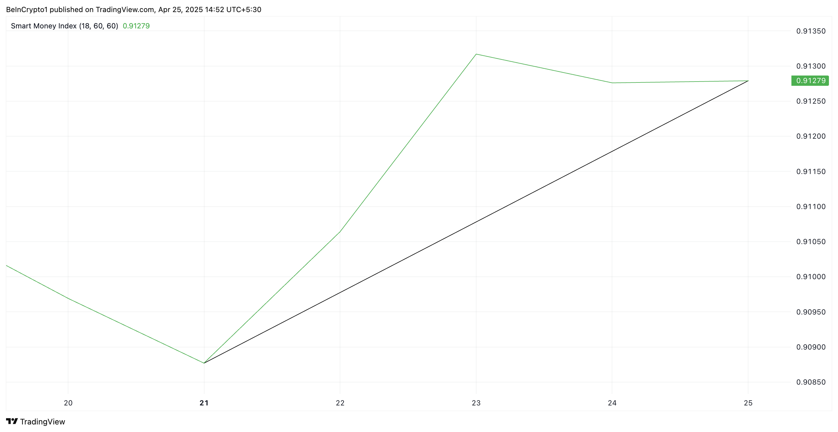 Альткоин бағасы көтерілген сайын, техникалық талдау ірі инвесторлардан, жиі «смарт ақша» деп аталатын, жинақталудың өсуін көрсетіп, токеннің қысқа мерзімді баға өсуіне деген оптимизмнің артқанын білдіреді.