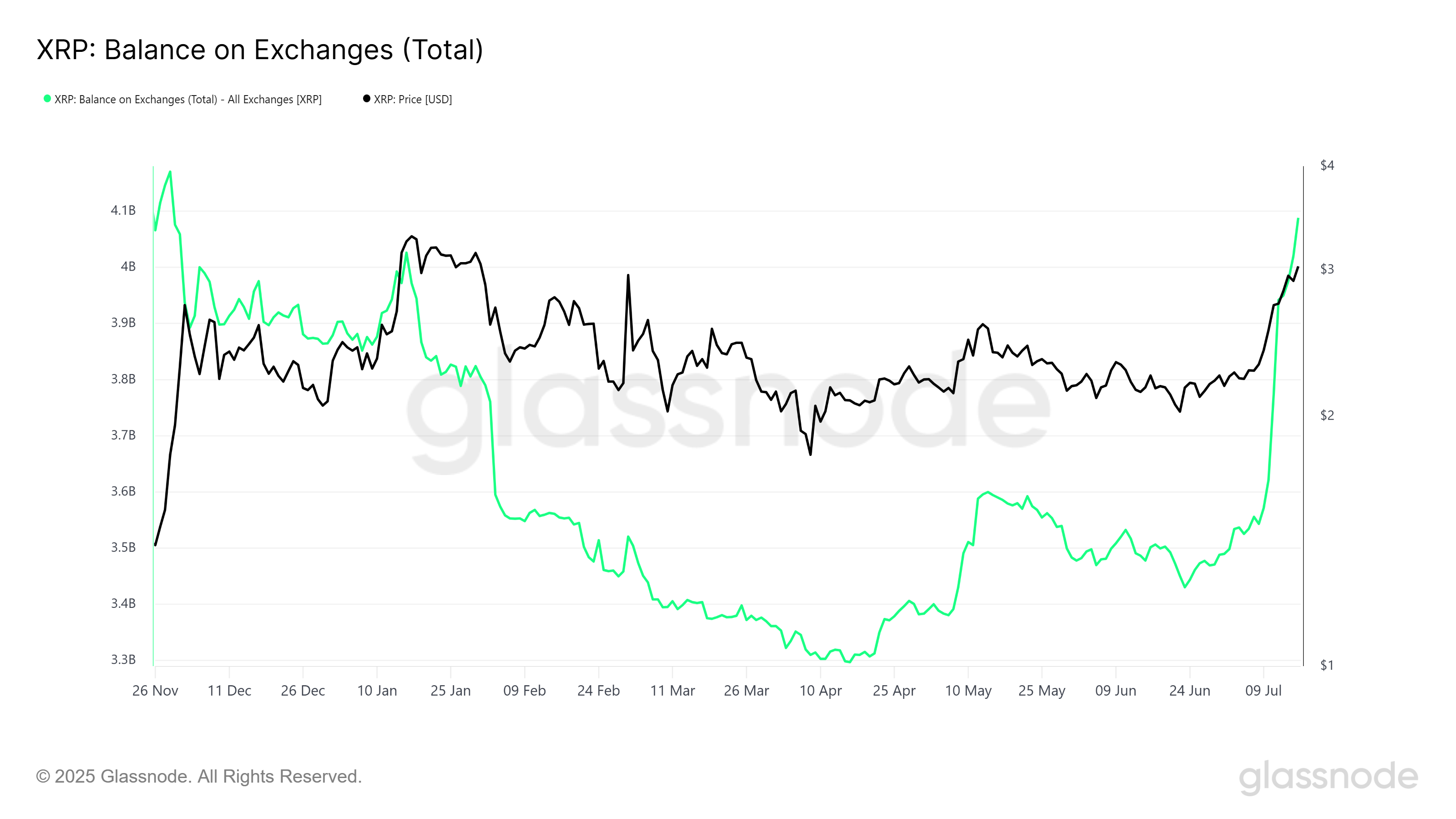 Соңғы он күн ішінде XRP иелері 540 млн-нан астам токенді, шамамен 1,74 млрд долларға сатқан. 3,00 доллардан асқан өсім бұл сатылымды тудырған болуы мүмкін, себебі көптеген инвесторлар бағаның төмендеуінен қорқып, өз пайдасын бекітуді жөн көрді.
