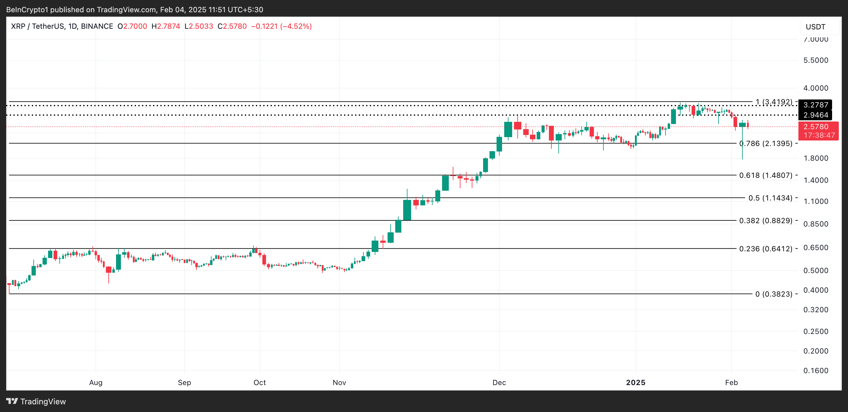 Бұл жазу кезінде XRP 2,57 доллардан саудаланып жатыр. Бұл дүйсенбідегі күндізгі төменгі 1,77 доллардан 45% өскенін білдіреді.