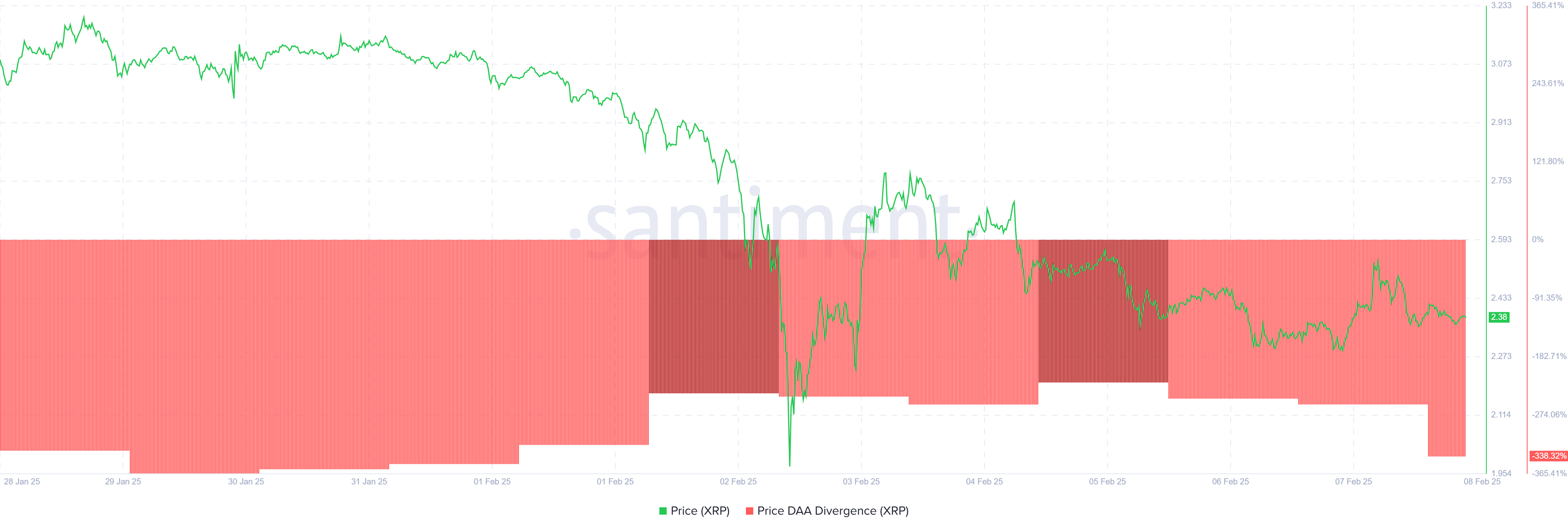 Баға мен күнделікті белсенді мекенжайлар (DAA) дивергенциясы индикаторы қазіргі уақытта сату сигналын көрсетуде. Бұл аюлы сигнал бағалардың төмендеуі мен инвесторлардың қатысуының азаюынан туындап отыр.