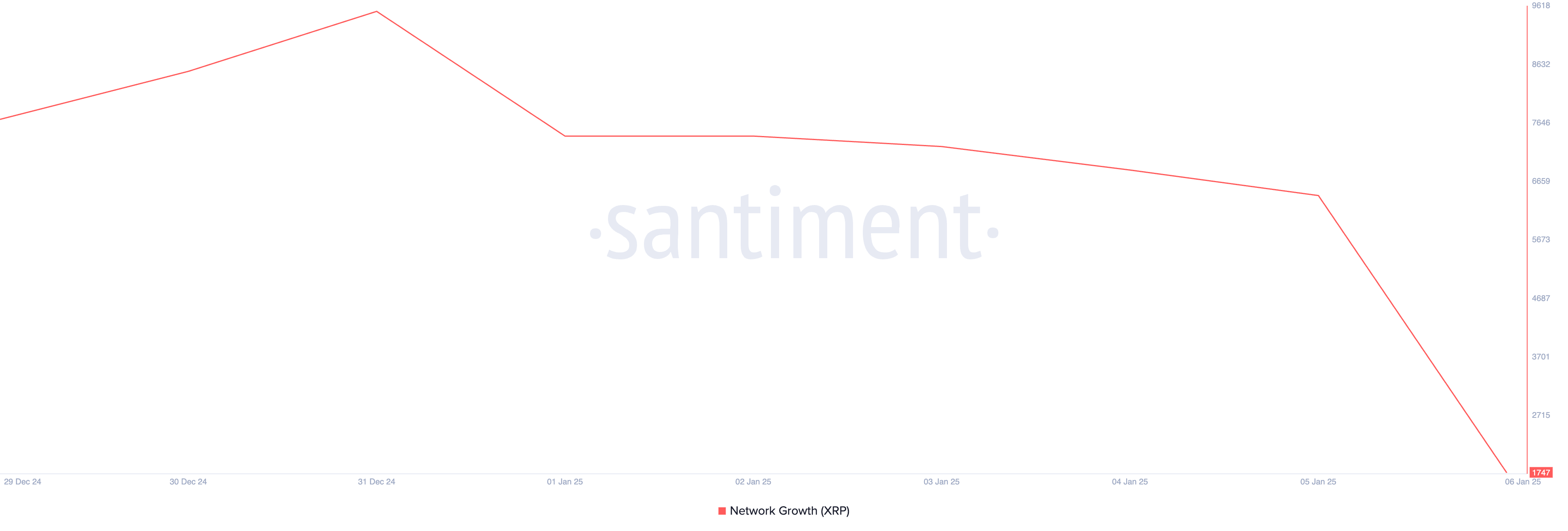 Santiment мәліметтері бойынша, XRP саудасы үшін жасалған жаңа мекенжайлардың күнделікті саны соңғы жеті күнде 32% төмендеді. Қызықтысы, осы кезеңде токеннің бағасы екі таңбалы санға өсті.
