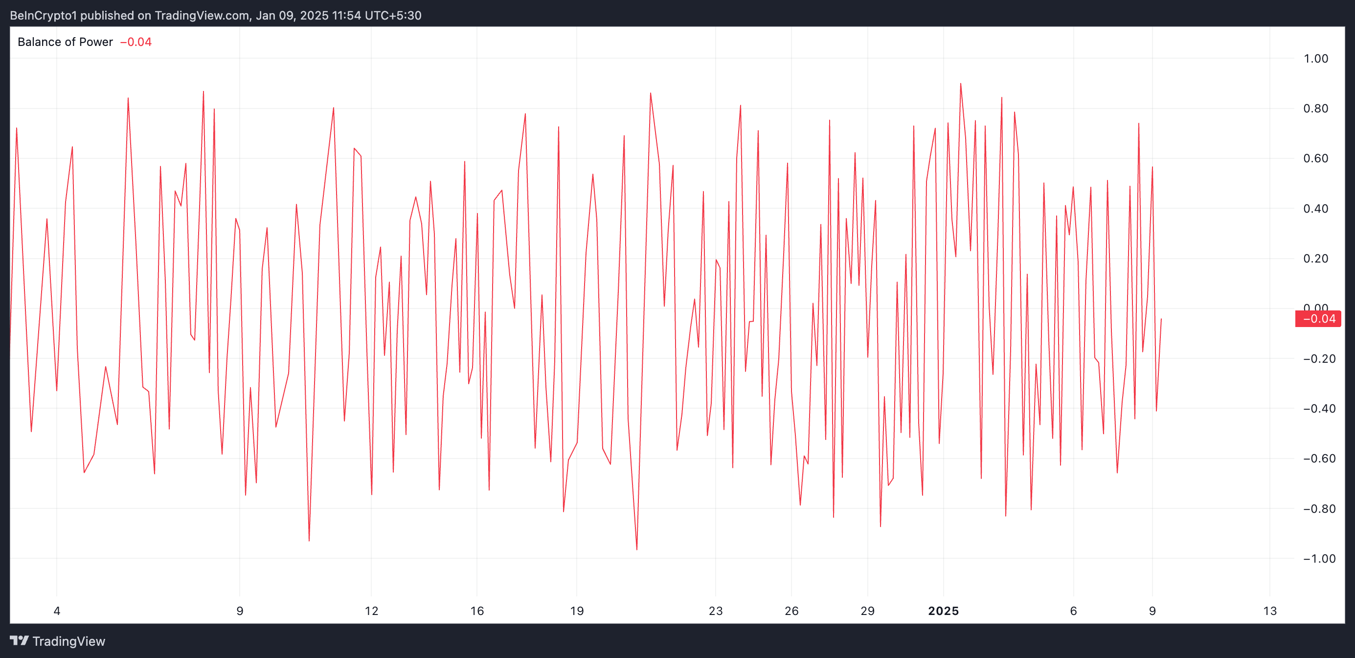 Біріншіден, оның Күш Балансы (BoP) баспасөз уақытында -0.04 деңгейінде, бірден төмен. Бұл көрсеткіш белгілі бір кезеңдегі баға қозғалысын талдау арқылы сатып алушылар мен сатушылардың күшін өлшейді.