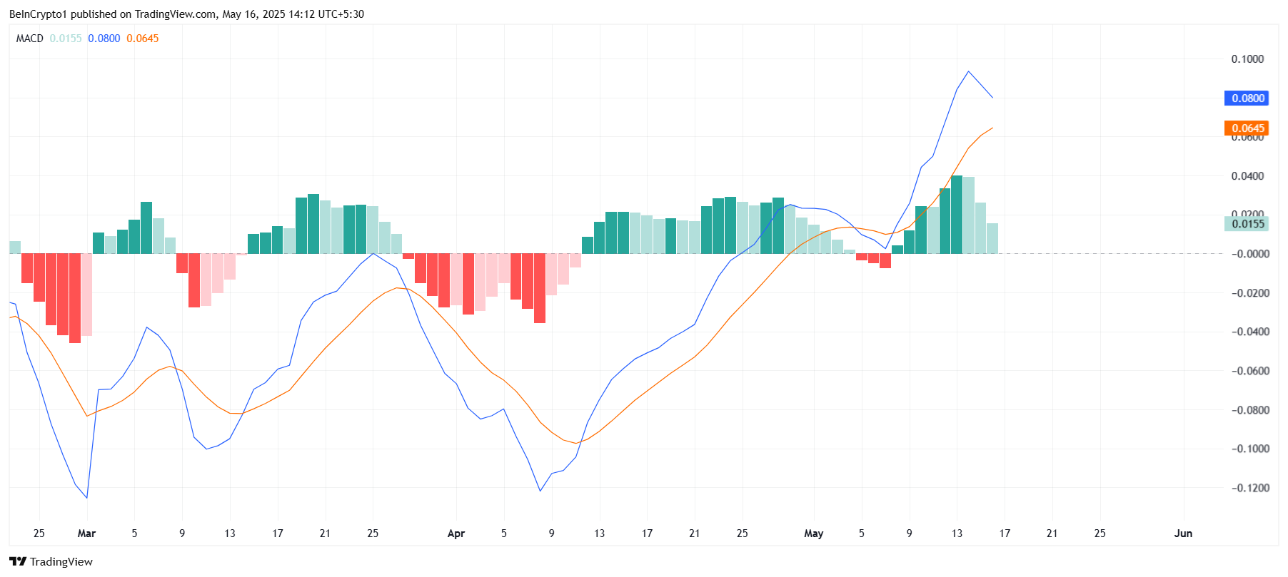 Қазіргі уақытта MACD гистограммасы жасыл жолақтардың кішірейіп жатқанын көрсетеді, бұл бұқа трендінің әлсіреп жатқанын білдіреді. Егер кроссовер жақын арада орын алса, XRP күшейтілген сату қысымына тап болуы мүмкін, бұл бағаларды төмендетіп, жалғасып жатқан төмендеуді тереңдетеді.
