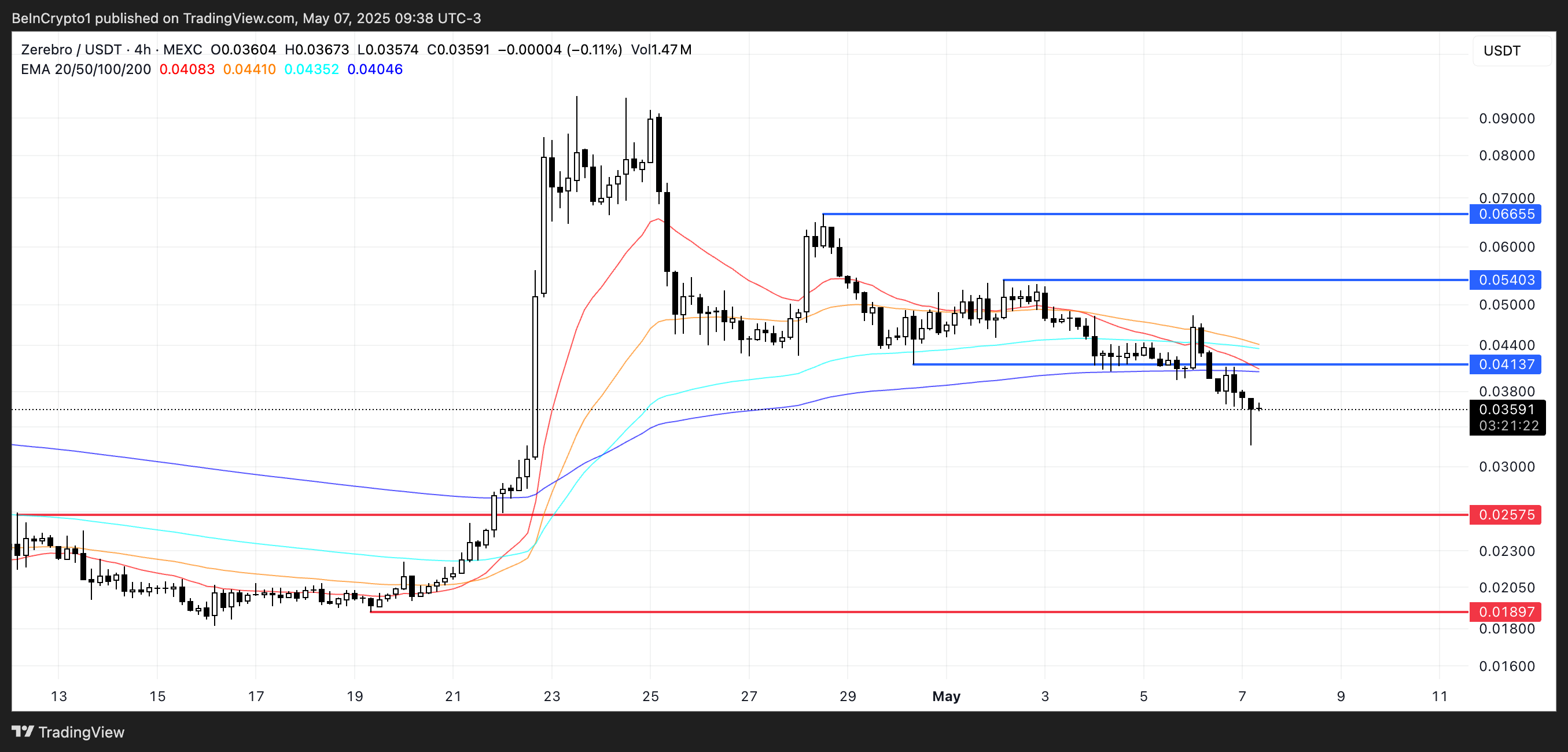Керісінше, егер сатып алушылар араласып, трендті өзгертсе, ZEREBRO алдымен $0,041 қарсылығын қайта сынауы мүмкін.