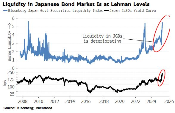 «Жапонияның облигациялар нарығындағы өтімділік 2008 жылғы Lehman дағдарысы деңгейіне дейін төмендеді. Біз тағы бір қаржылық дағдарысты бастан кешіргелі тұрмыз ба?» – деп жазды Financelot X (Twitter) желісінде.