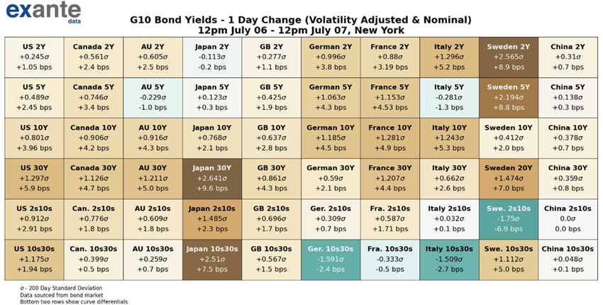 «Соңғы 24 сағаттағы ең үлкен қозғалыс: Жапония 30Y. Осы кезеңде 2 стандартты ауытқу қозғалысы болған G10 облигацияларының кірістілігіне: Жапония 30Y, Швеция 2Y, Жапония 10s30s, Швеция 5Y кіреді», – деп фирма .