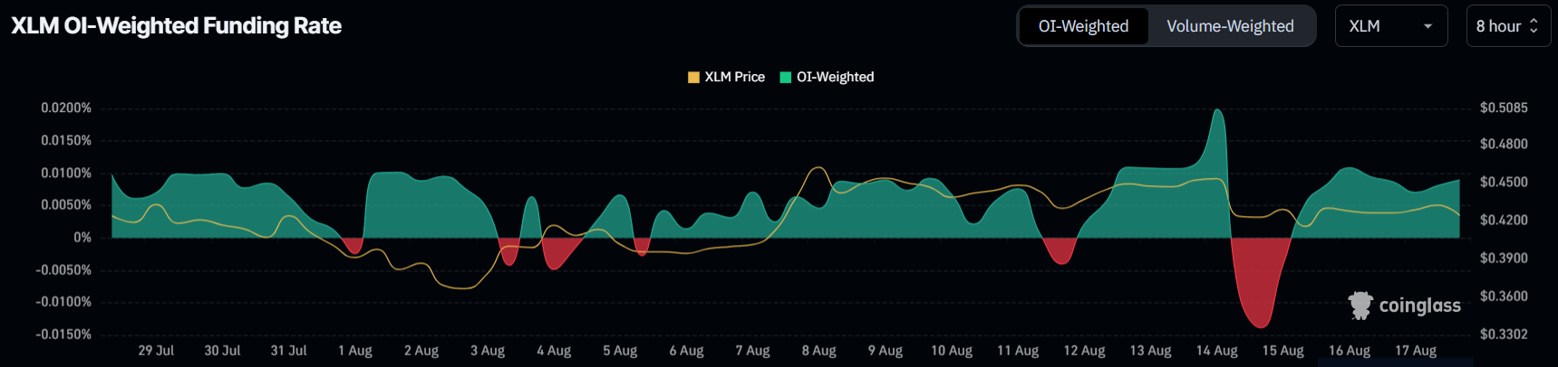 XLM трейдерлері өткен аптада белгісіздікті күшейтті. Бұл шешімсіздік қаржыландыру мөлшерлемесінде көрініс тапты, ол оңнан теріске ауысып, қайтадан оңға өзгерді. Мұндай ауытқулар инвесторлардың активке қатысты нақты көзқарас қалыптастыруда қиындықтарға тап болып жатқанын, оның бағасы айналасындағы құбылмалылықты арттыратынын көрсетеді.